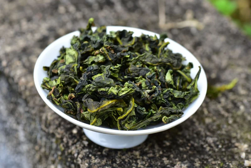 Tie Guan Yin is made from the Tie Guan Yin cultivar of the Camellia sinensis plant. The processing involves withering, shaking (yaoqing), partial oxidation, and roasting, which creates its characteristic green leaves with red edges and its unique flavor profile.